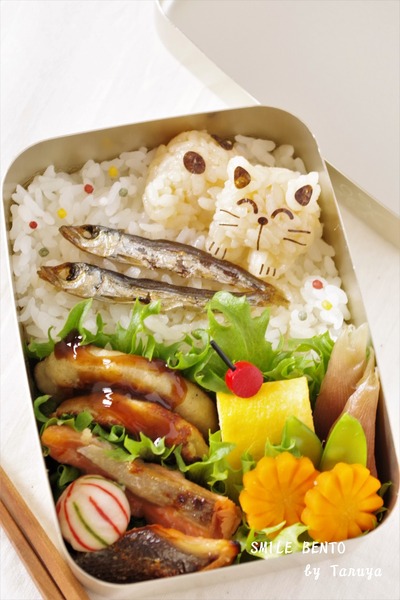 大好物を狙う猫ちゃん弁当 2017年03月27日 こんにちは。今日はオリジナルキャラのお弁当をご紹介。「大好物を狙う猫ちゃん弁当」おやつ用のうるめいわしをお弁当に乗っけました(^^)/猫ちゃんが嬉しそうだわ( *´艸`)このうるめイワシ、硬いから一応甘酢で煮詰めたのです。少しは柔らかくなったかな~、少しだけね(^_- ... 続きを読む