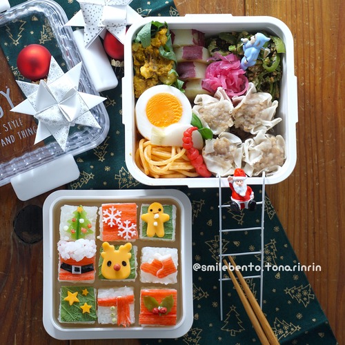 アドベントカレンダー弁当2024 2024年12月13日 こんにちは。今年も作りました!アドベントカレンダー風のお弁当あまり凝らず、抜き型を最大限活用おにぎりは角柱。2.5×2.5×3.0 サイズ押し型で作りました今日のおかず・シュウマイ・ピーマンと塩昆布のすりごま和え・かぼちゃサラダ(リンゴとプルーン入り)・紫玉ねぎの ... 続きを読む