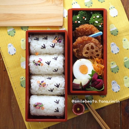 やっと金曜日。 2025年02月28日 こんにちは。今週もお弁当作り、乗り切った!簡単に海苔アートにしてみました。たわらむすびに足あとつけた海苔アートです。犯人はお弁当包みにいる子たち今日のおかず・ブロッコリー・甘辛チキン・味付け卵・にんじんきんぴら・さつまいもの甘煮・しば漬け今日も皆様にとっ ... 続きを読む