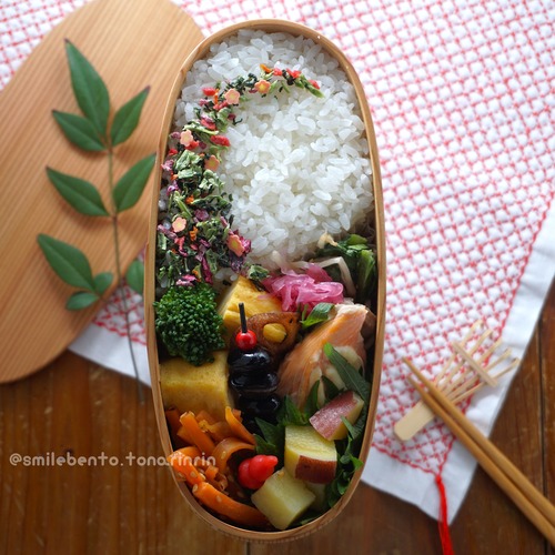 「和」のお弁当 2025年03月26日 こんにちは。今日は「ザ・日本のお弁当」を作りましたふりかけアートです。先日完成した「米刺し柄」の刺し子ふきんをバックに撮影いい感じ~今日のおかず・豚肉と野菜炒め・だし巻き卵・紫玉ねぎの甘酢漬け・ブロッコリー・鮭のマヨネーズ焼き・黒豆・にんじんきんぴら・さ ... 続きを読む