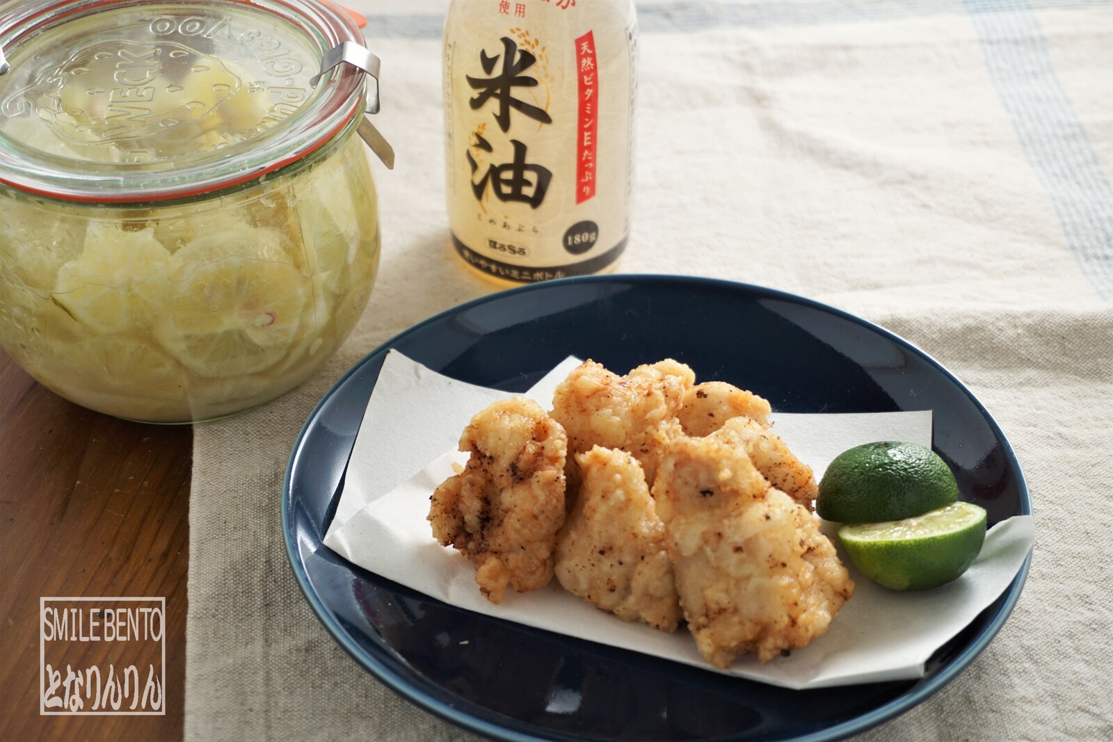塩レモンならぬ「塩すだち」で下味。
