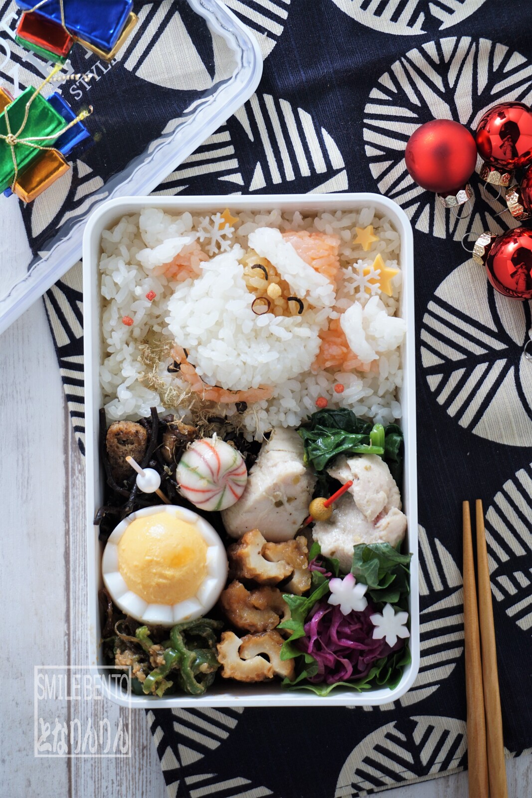 煙突から出てきてるサンタになったあのお弁当。