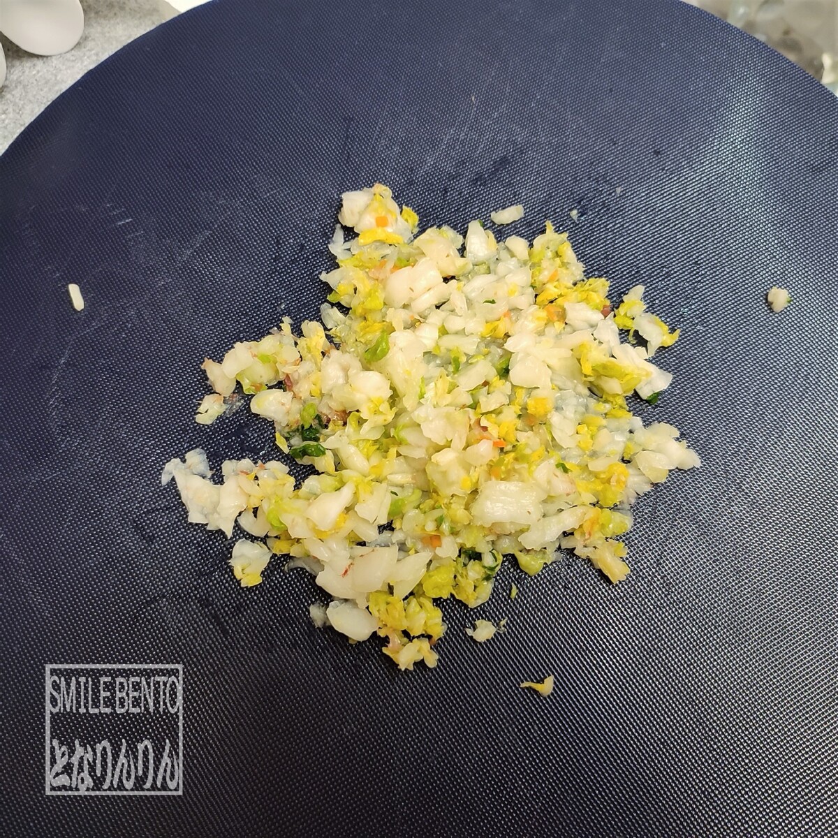 ②割烹白菜漬を硬く絞ってみじん切りにする。