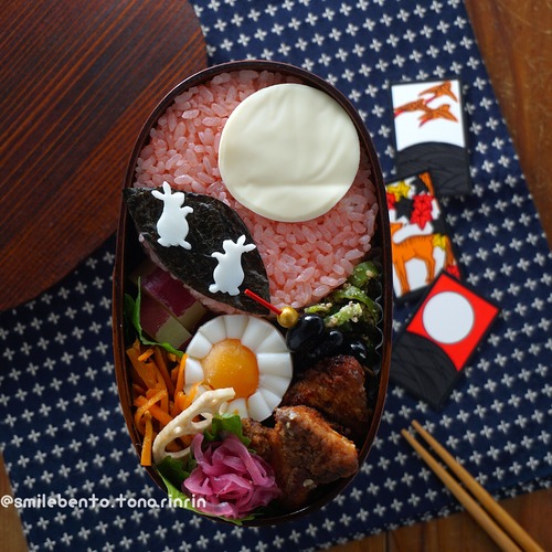 花札弁当「芒に月」 2022年08月04日 こんにちは。久しぶりのお弁当作りです。まずは小手始めに「花札弁当」を作りました。8月の花札は「芒(すすき)」有名な絵柄「芒に月」じゃりン子チエの世界観( *´艸`)うさぎも加えてみました。お月見みたいやん(;'∀')ご飯(塩ご飯)は丸型の物相を使い、その上にカニカ ... 続きを読む